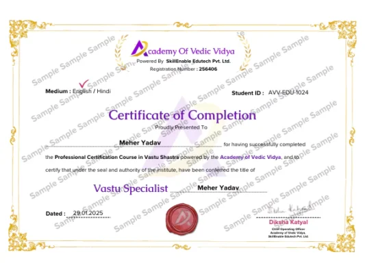 Through a well-structured Vastu Shastra course at the Academy of Vedic Vidya, students gain a deep understanding of how spatial orientation, directional energies, and structural design influence human life. The course goes beyond basic principles and delves into practical applications, including residential, commercial, and spiritual architecture. Whether you are a curious beginner or an aspiring consultant, this comprehensive program equips you with the tools to analyze and harmonize any environment using time-tested Vastu techniques.